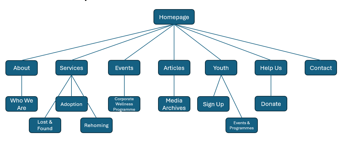Before starting on my prototype, I visualize the key pages that the website needs by laying it out with a Content Plan and Sitemap